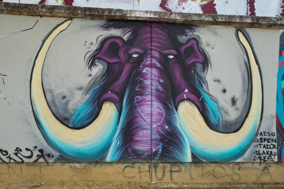 a bit diminished by the graffiti that mars its base. Still against the blue sky